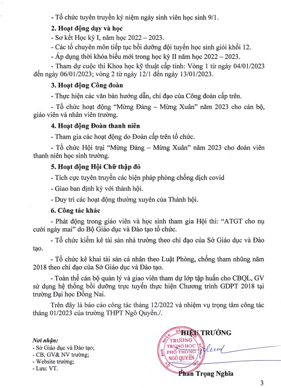 VÀ NHIỆM VỤ TRỌNG TÂM CÔNG TÁC THÁNG 01/2023