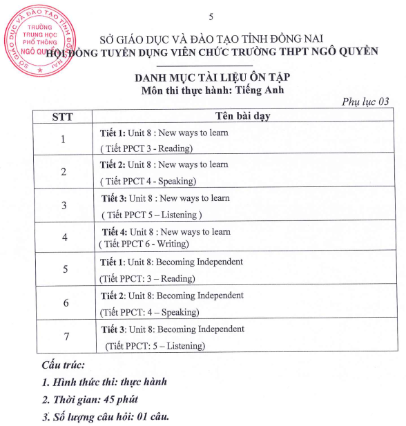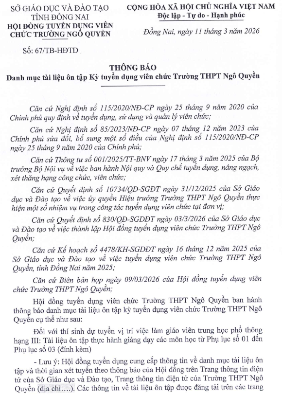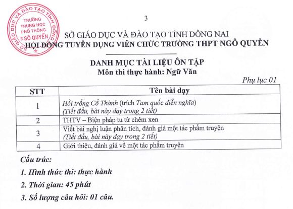 THÔNG BÁO DANH MỤC TÀI LIỆU ÔN TẬP KỲ TUYỂN DỤNG VIÊN CHỨC TRƯỜNG THPT NGÔ QUYỀN